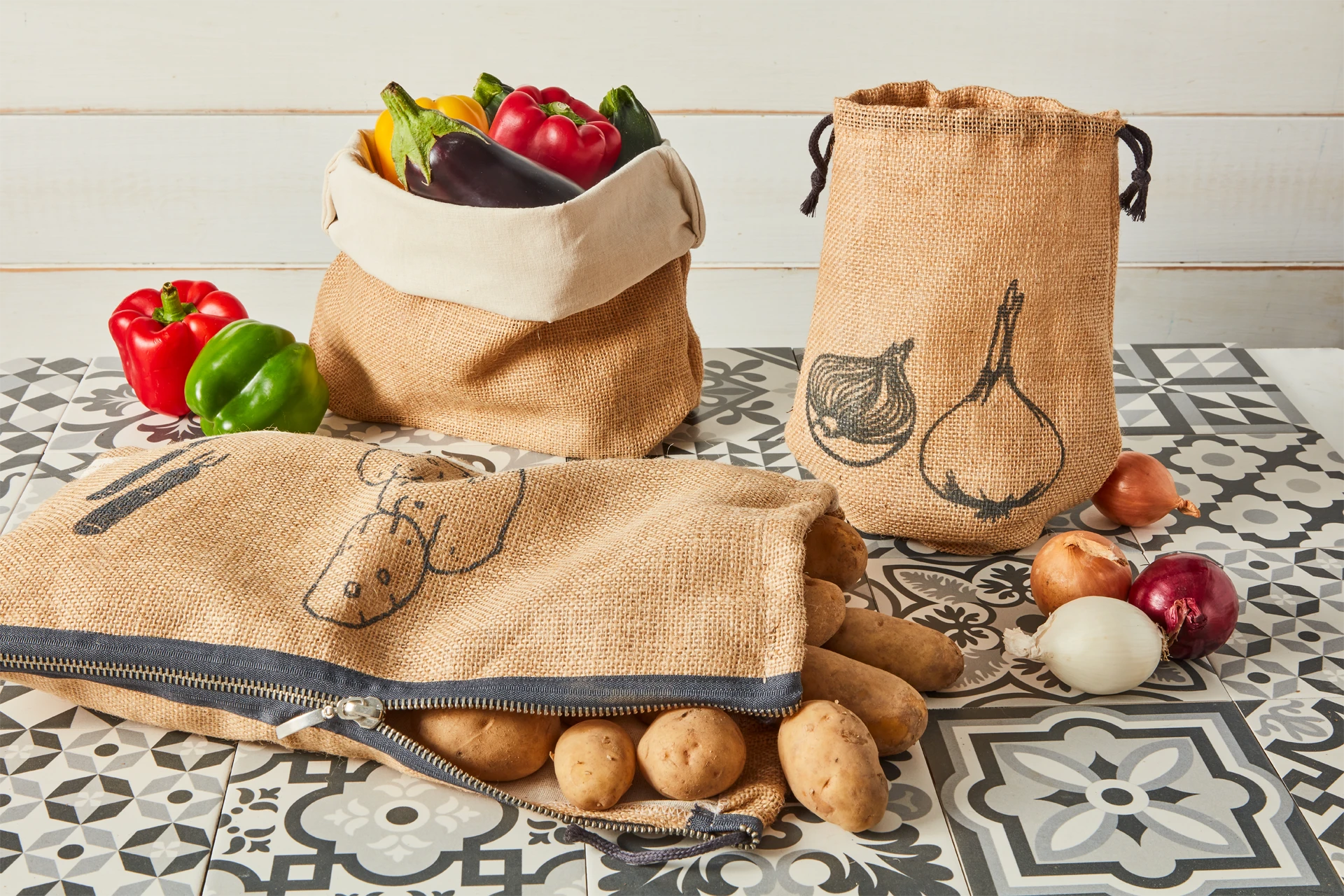 Unser Redecker Zwiebelsack schützt Zwiebel- und frische Knoblauchknollen optimal vor Lichteinfall und verzögert so die Keimbildung deutlich. Die luftdurchlässige Textilstruktur aus Sackleinen und Nesselbaumwolle verhindert Feuchte- und Fäulnisbildung. Der Clou: Durch den eingearbeiteten runden Boden steht der Zwiebelsack auch gefüllt stabil auf ebenen Flächen, z.B. in Speisekammer oder Kellerregal – oder dekorativ in der Kochecke auf der Arbeitsplatte.
